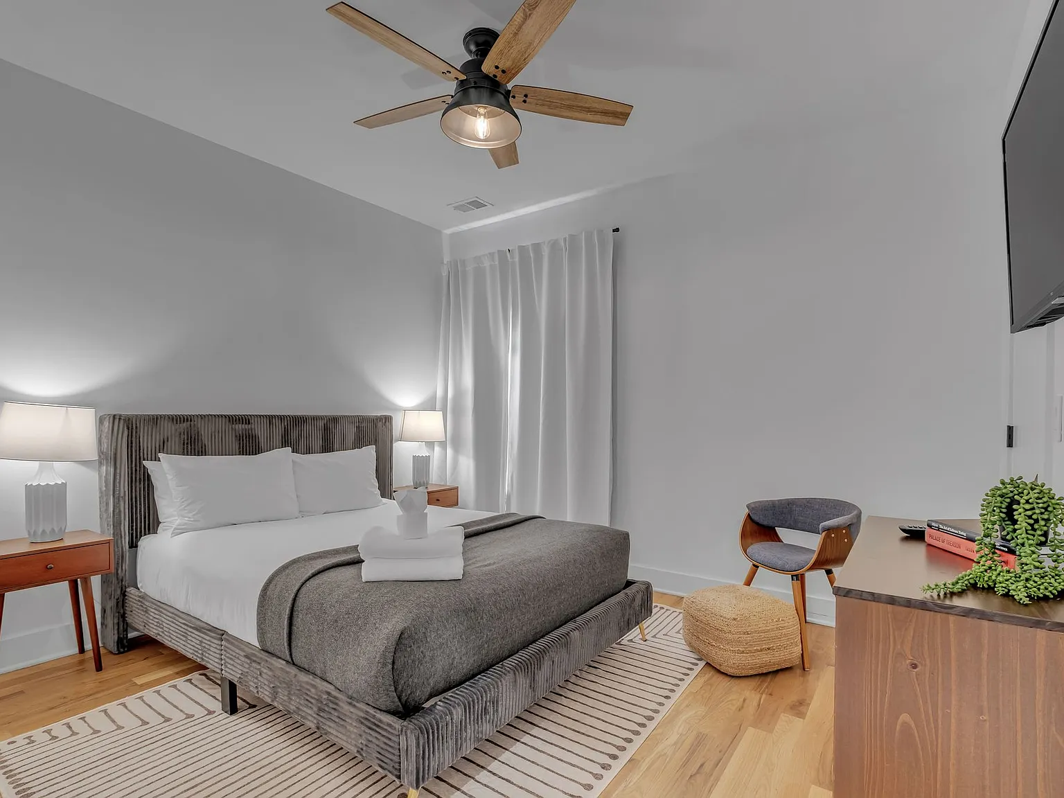 Mid Term Rental (30-90 days): Experience the charm of East Nashville in this new beautifully decorated, 3-bedroom home. The moody mid-century modern aesthetic creates a cozy and inviting atmosphere, perfect for relaxing and entertaining. Features include upscale modern finishes, ample natural light, and a spacious layout. Enjoy the convenience of being minutes away from some of Nashville’s best restaurants, bars, and shops. Don’t miss your chance to live in one of the city’s most sought-after neighborhoods! NO LOCAL BOOKINGS – Inquire Only – We Reserve The Right To Cancel Anyone Related to Nashville and Within 60 Miles PLEASE NOTE: This home is not suitable for children. This spacious and inviting property boasts a large and fully-equipped kitchen, perfect for cooking and entertaining. Whether you’re a master chef or a novice cook, the ample counter space and high-end appliances will make meal prep a breeze. After a long day, retire to one of the comfortable bedrooms, where you’ll find plush bedding and a peaceful ambiance. The property also features ample space to relax, whether you’re looking to curl up with a book or enjoy time with friends. This is the perfect place to call your home away from home! High Speed Wifi Professionally Decorated Modern Kitchen with Great Appliances Luxurious Amenities Near Many East Nashville Favorites You will have access to the entire home. 25 min bus and walk commute to downtown Nashville 14 min drive to Broadway/Bridgestone (5.1 miles) 16 min drive to Music Row( 7 miles) 16 min drive to 12 South ( 7.8 miles) 16 min drive to the Airport (10.2 miles) 17 min drive to Sylvan Park ( 10.1 miles) 15 min drive to Grand Ole Opry (7.9 miles).